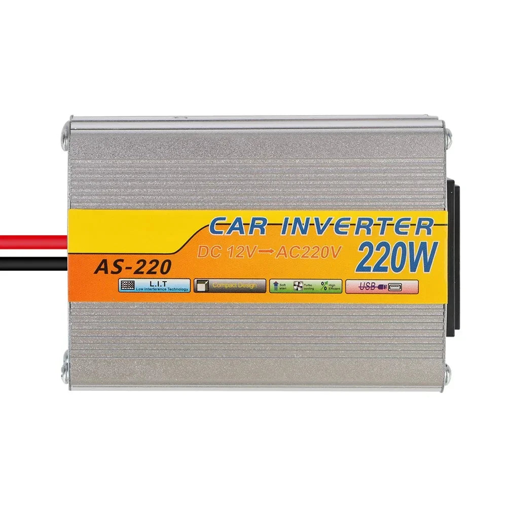 Convert your car’s 12V DC power into 220V AC with this compact 220W Power Inverter — ideal for charging laptops, phones, cameras, and other electronics on the go. Includes USB port and battery clips for versatile use.