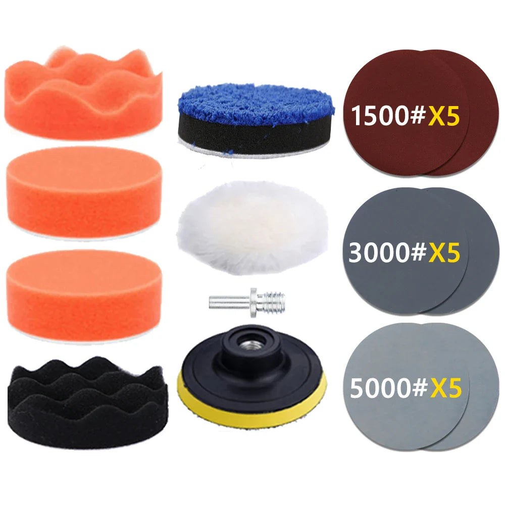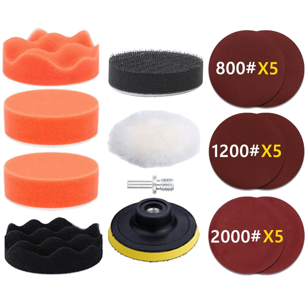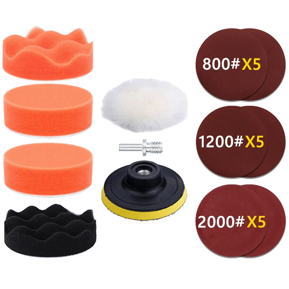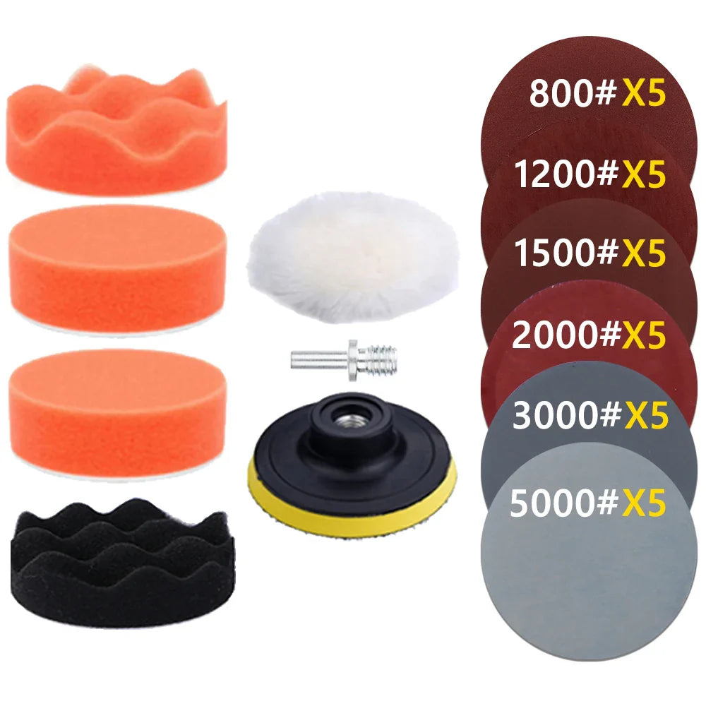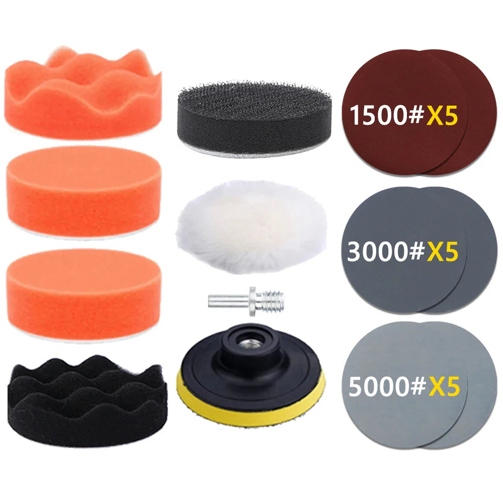 All-in-One Kit – Includes polishing sponge pads, sanding discs, and a wool buffing pad