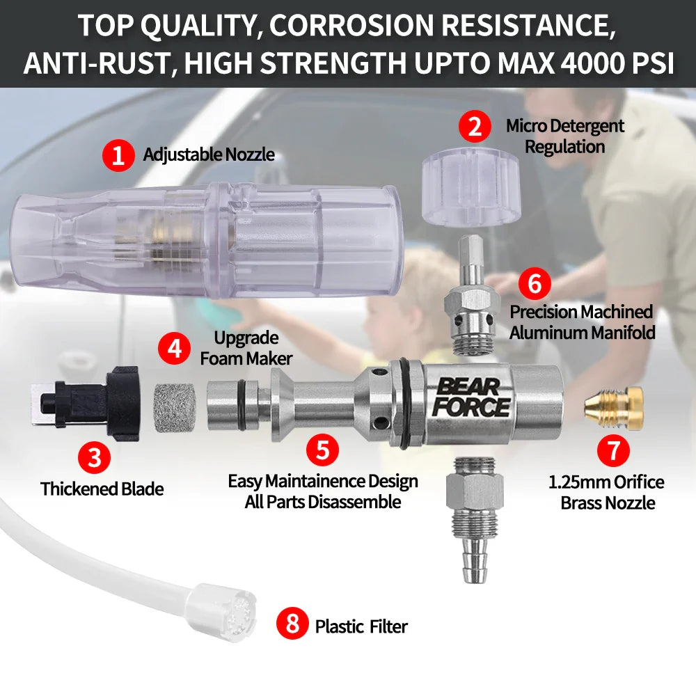 Achieve a professional-grade clean at home with this Aluminum Foam Lance Foam Nozzle — engineered to deliver thick, clinging foam that lifts dirt effortlessly. Compatible with Karcher, Elitech, Bort, AR, Bosch, Michelin, and more.