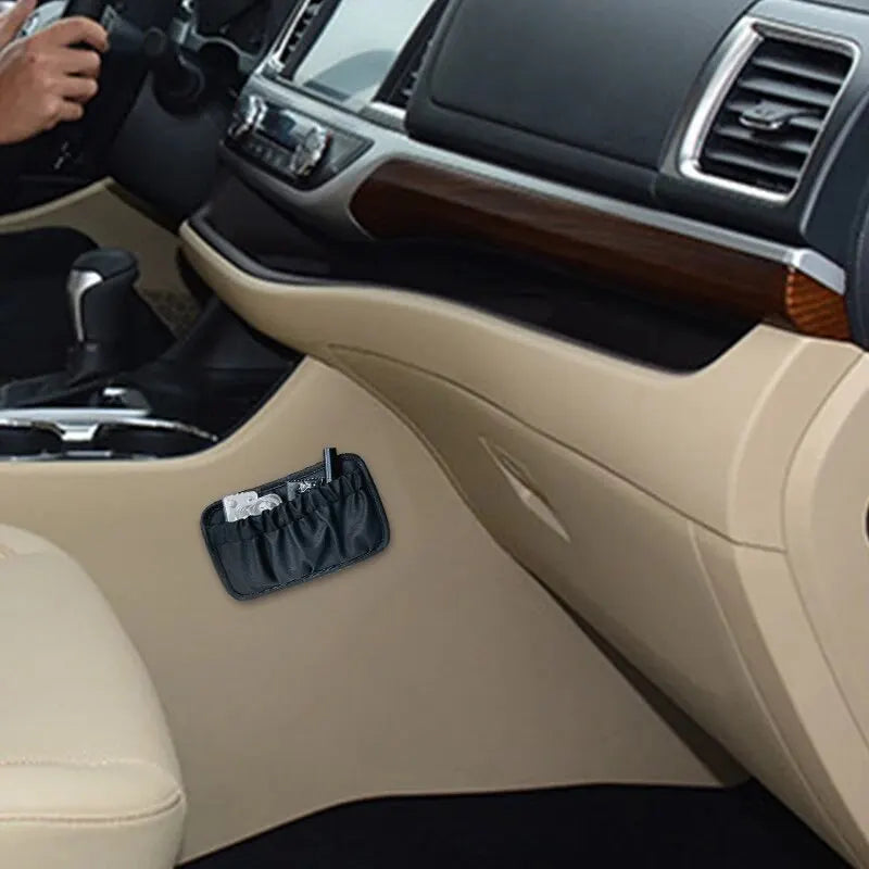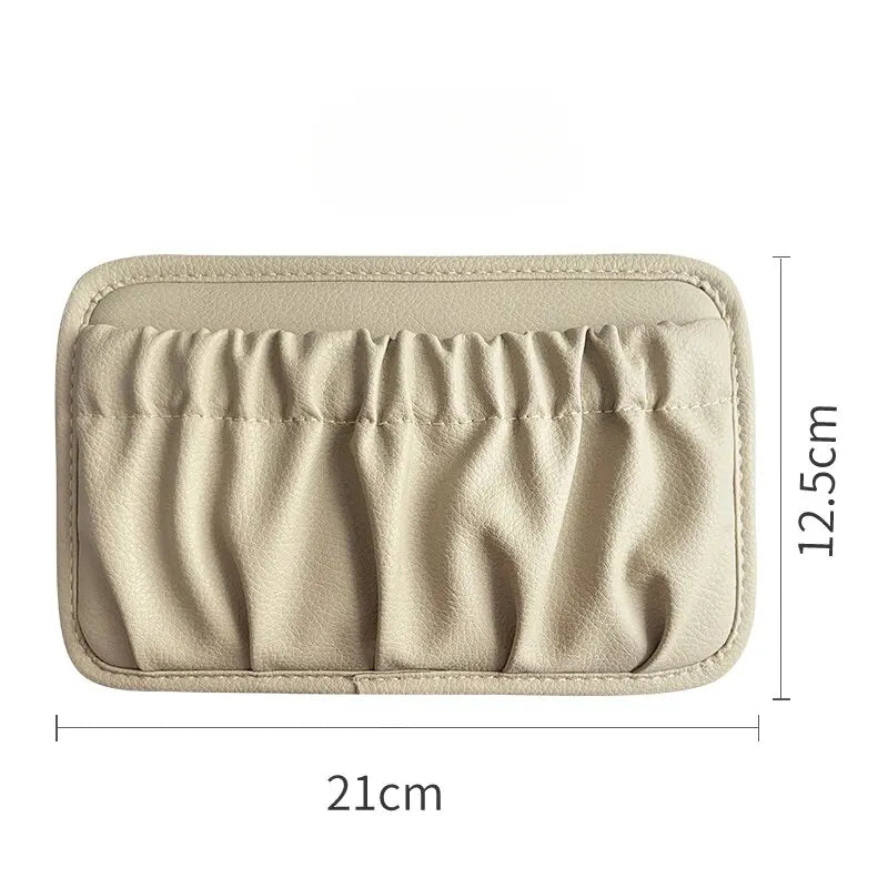 Keep your essentials organized and within reach with this adhesive leather storage bag — perfect for holding your phone, keys, and small accessories in the car!