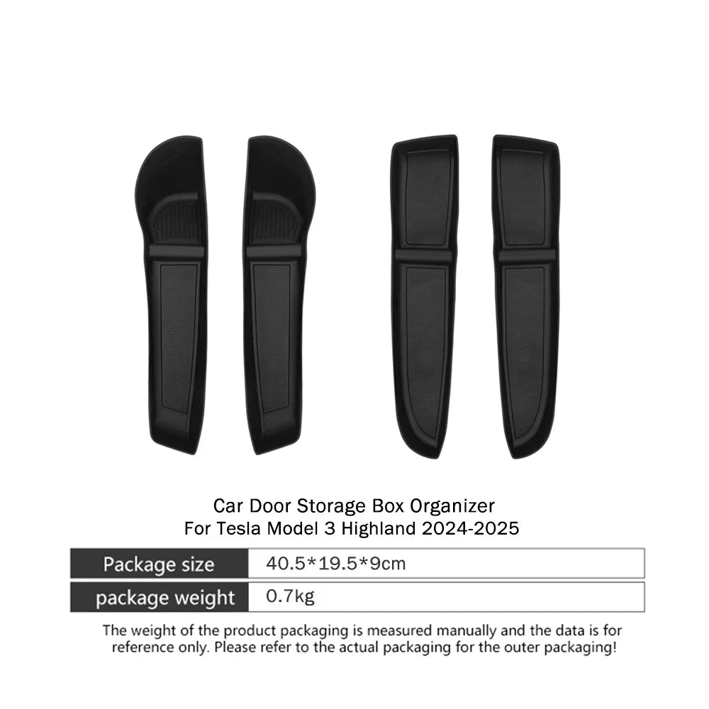Tesla Model 3 Highland 2024 Car Door Side Storage Box – Front & Rear TPE Organizer Tray