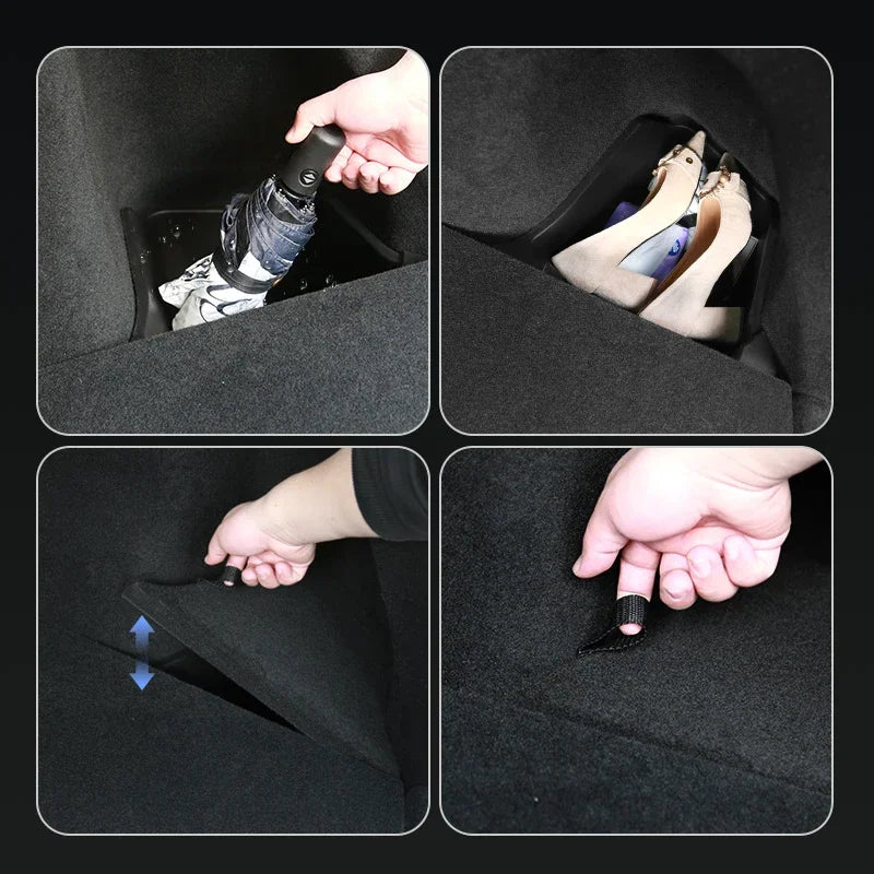 Enhance your Tesla’s utility and style—add this rear trunk side storage box with flocking mat and partition board to your Model Y Juniper accessories today!