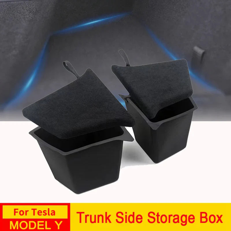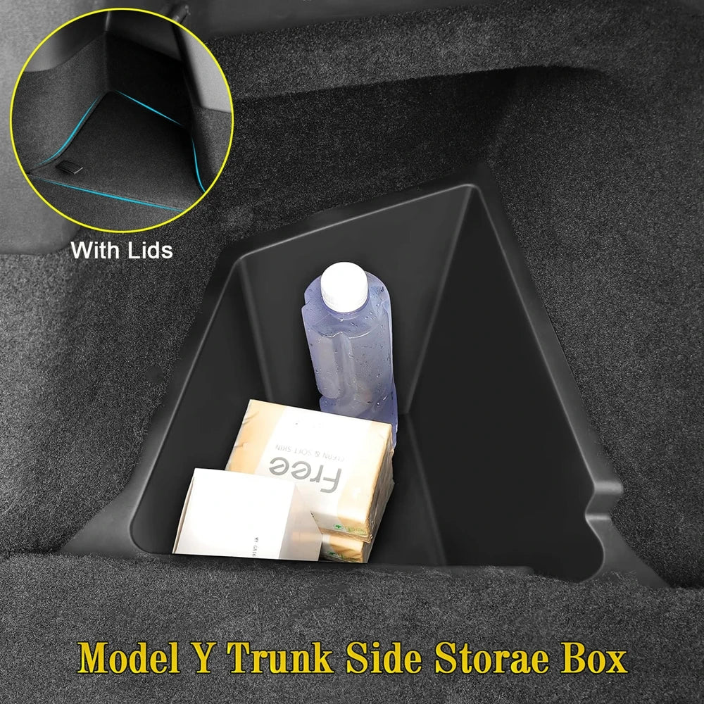 Maximize trunk space in your Tesla Model Y with the USVOTOV side storage bins — a sleek and practical solution to keep your cargo area tidy and essentials securely stored.