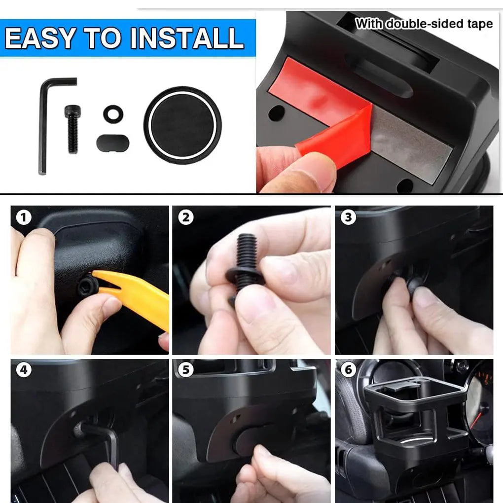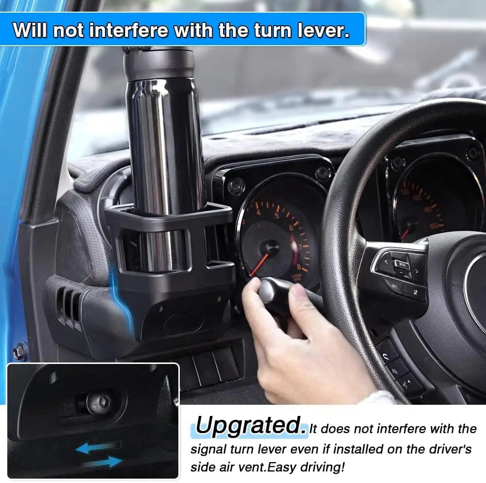Add extra convenience to your Suzuki Jimny with this stick-on water cup holder, designed to fit JB64 Sierra and JB74W models from 2019 to 2023, perfect for holding drinks securely inside your car.