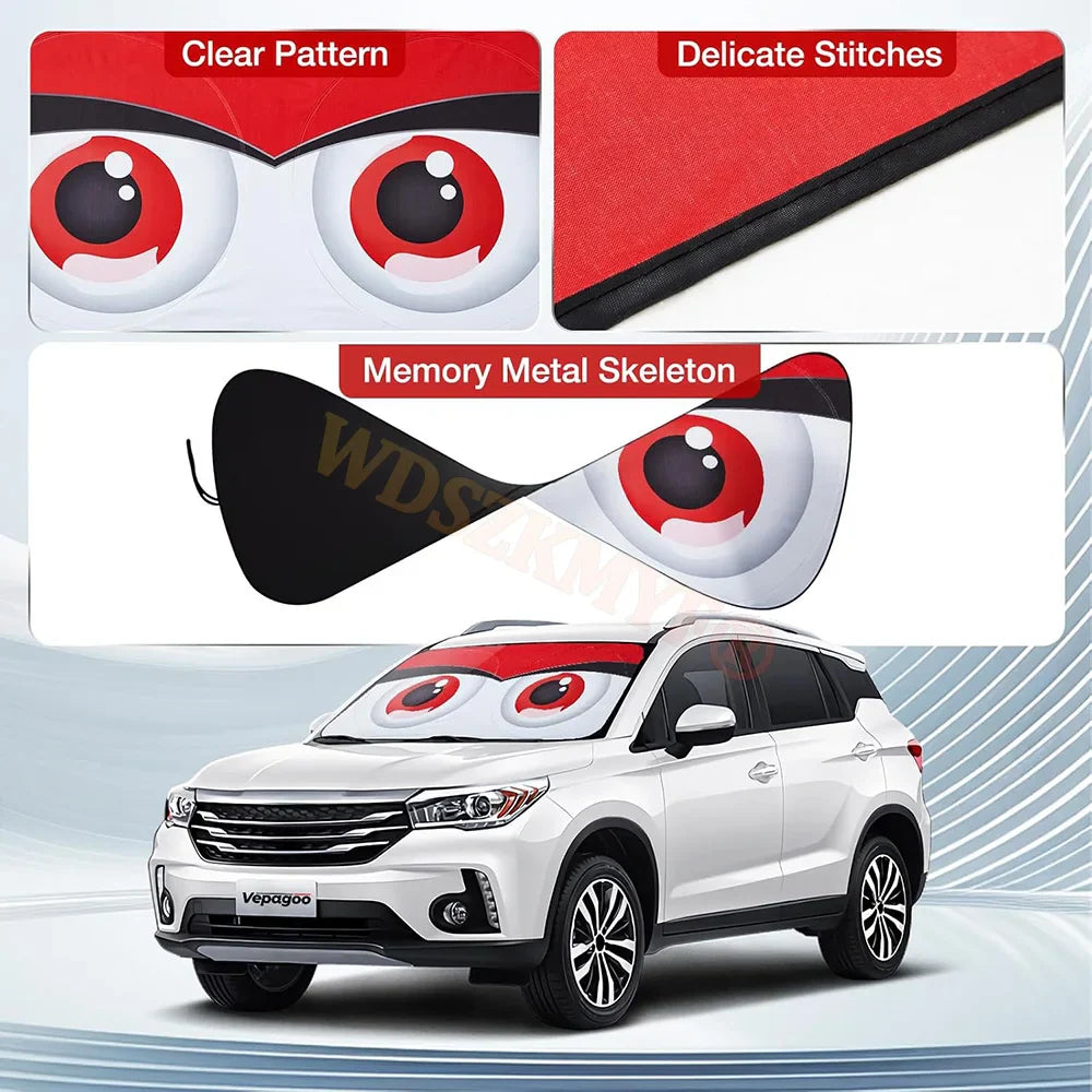 Car Cartoon Devil's Eye Foldable Windshield Sun Shade – 59" x 27.5" Funny Sun Visor