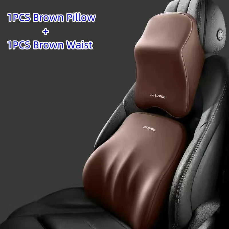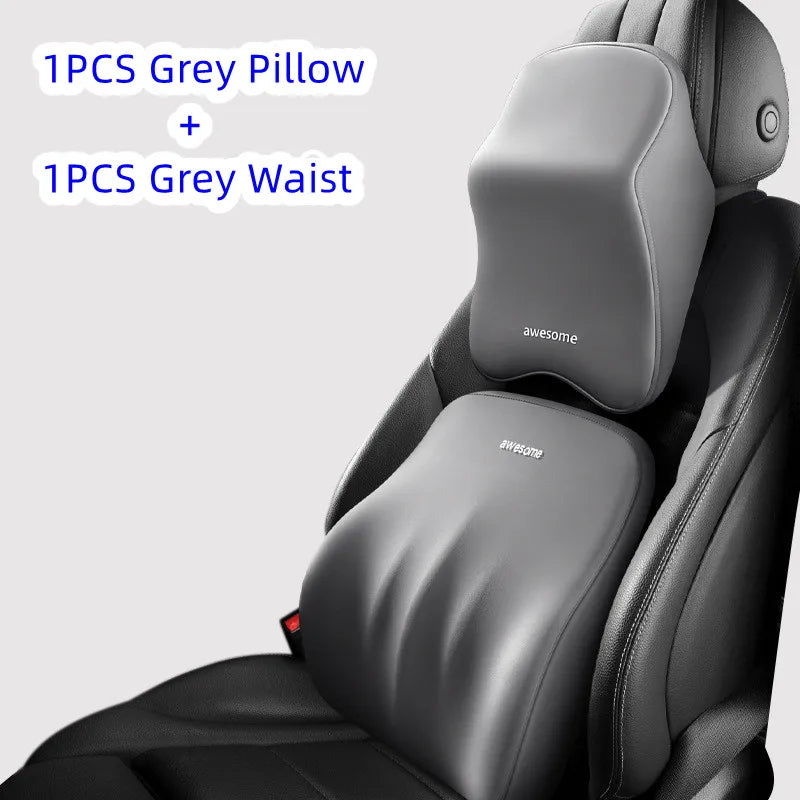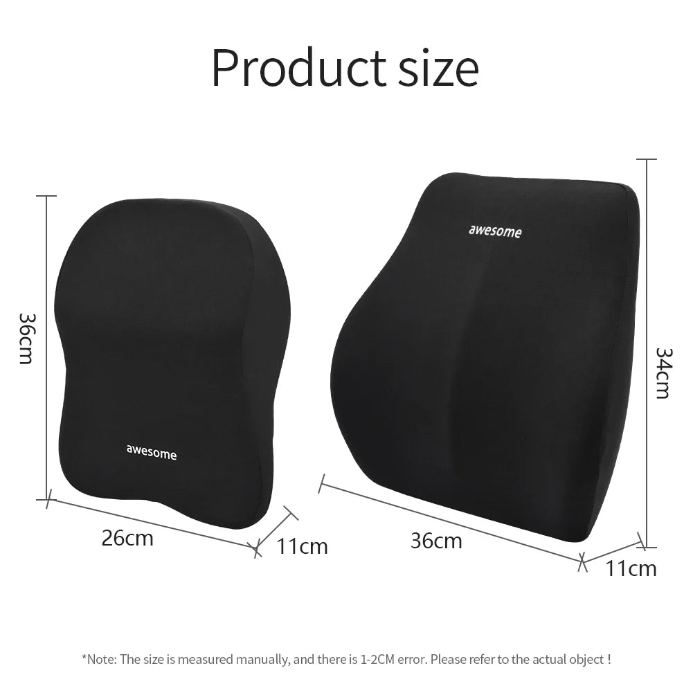 Car Lumbar & Neck Support Pillow – Memory Foam Cushion Set