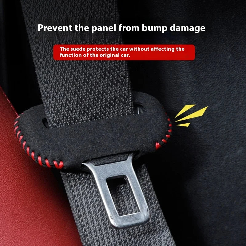 Enhance your car interior and drive in comfort with this suede seat belt buckle protective cover — designed to protect your shoulder and add a premium decorative touch.