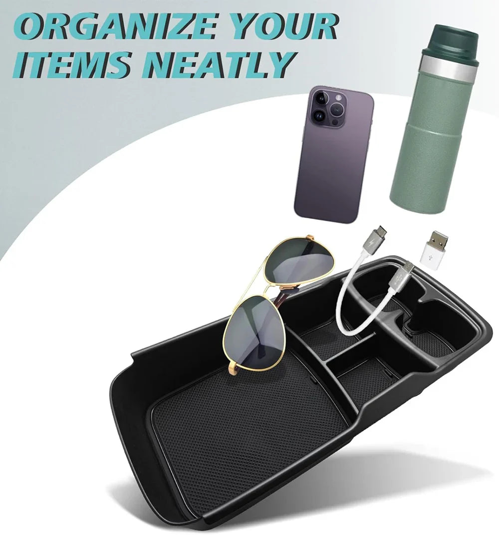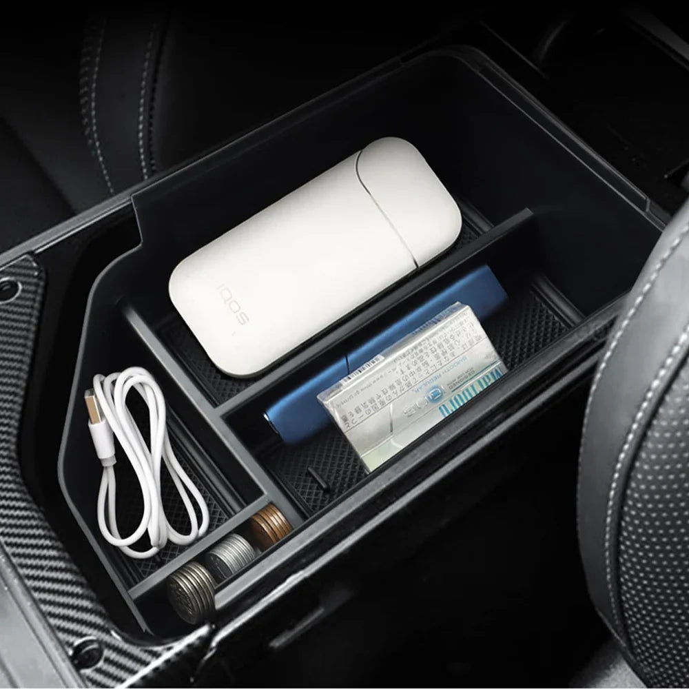 Maximize your Kia EV6 interior storage with this center console organizer and armrest storage box, designed to keep your essentials neat and easily accessible.
