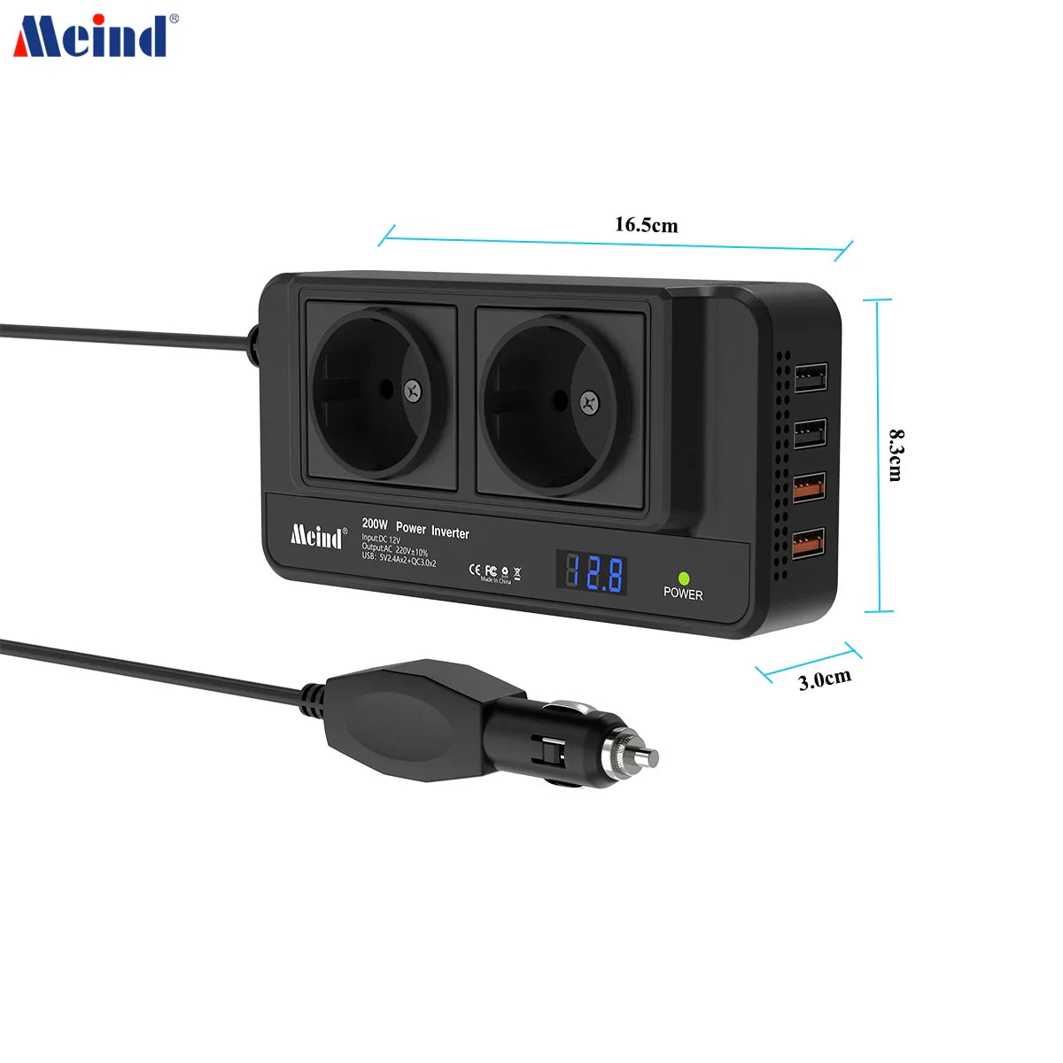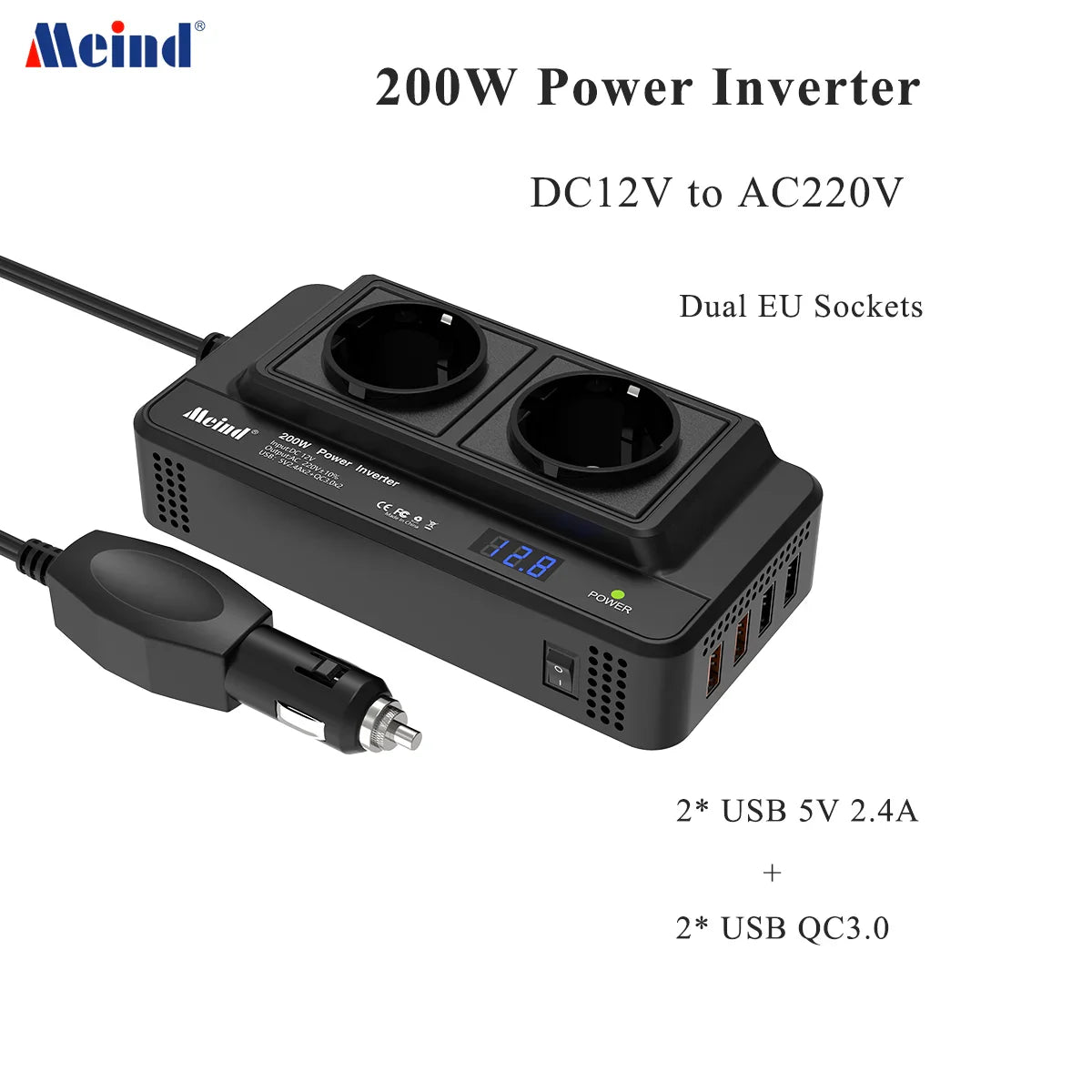 Meind 200W Car Power Inverter – 12V DC to 220V AC Converter with USB