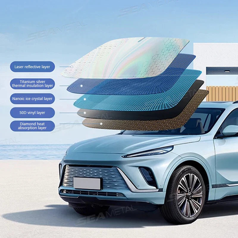 Keep your car cool and protected this summer with the SEAMETAL five-layer windshield sunshade. Engineered for superior UV blocking and heat insulation, it safeguards your dashboard and interior from sun damage.