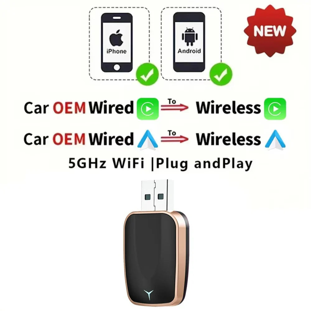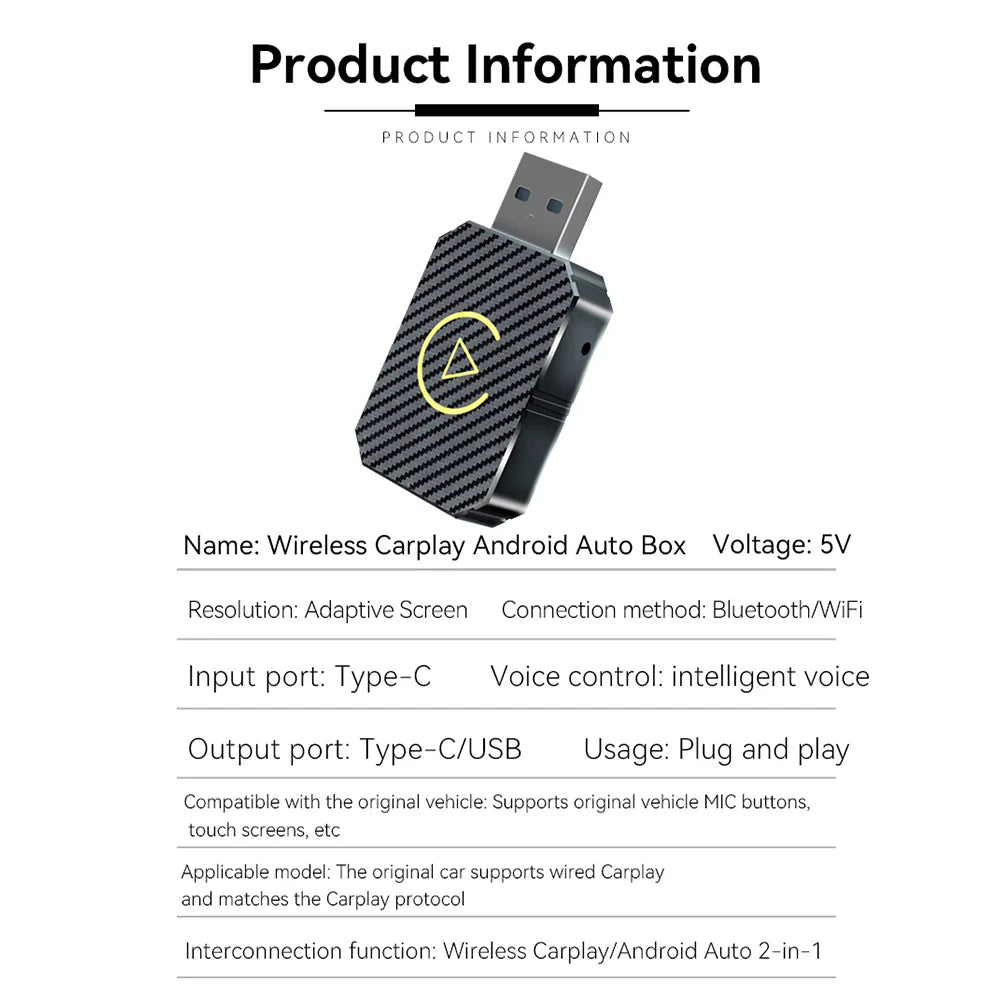 Upgrade your car infotainment system with this 2-in-1 Wireless CarPlay & Android Auto Adapter. Featuring fast 5GHz WiFi and Type-C/USB connectivity, it offers seamless, cable-free access to your favorite apps, navigation, and media.