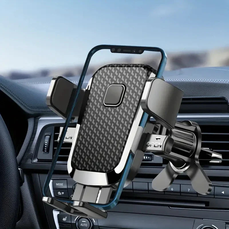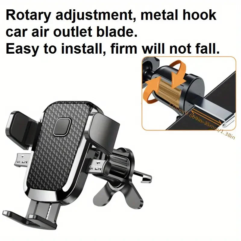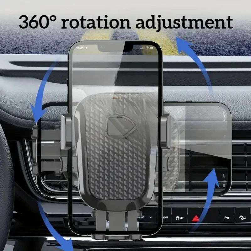 Secure your phone with ease using this universal car phone holder, designed with an air vent clip and adjustable bracket for safe and convenient in-car use.