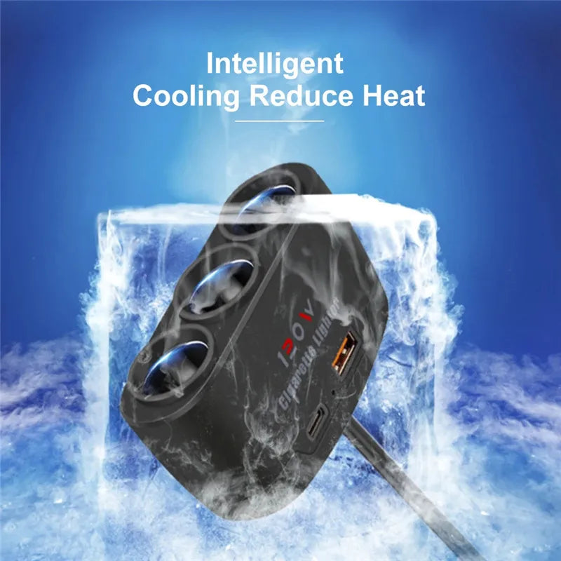 120W Dual USB Socket 3-in-1 Car Cigarette Lighter Splitter – Fast Charger & Power Adapter