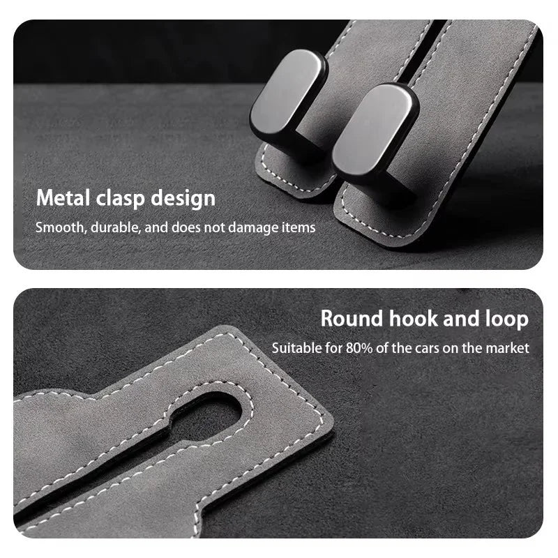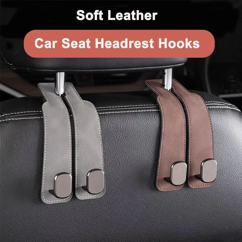 2-in-1 Car Headrest Hook – Premium Suede Rear Seat Dual Hook Hanger (20KG Load-Bearing)