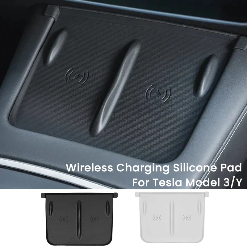 Upgrade your Tesla’s wireless charging area with this carbon fibre silicone pad — stylish protection and non-slip convenience in one accessory!