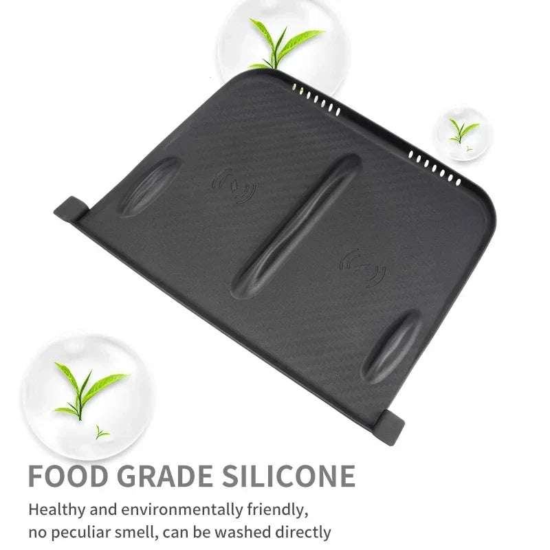 Keep your Tesla Model 3 or Y wireless charging area clean and secure with this sleek carbon fibre silicone pad — a perfect non-slip protector for your central control charger.