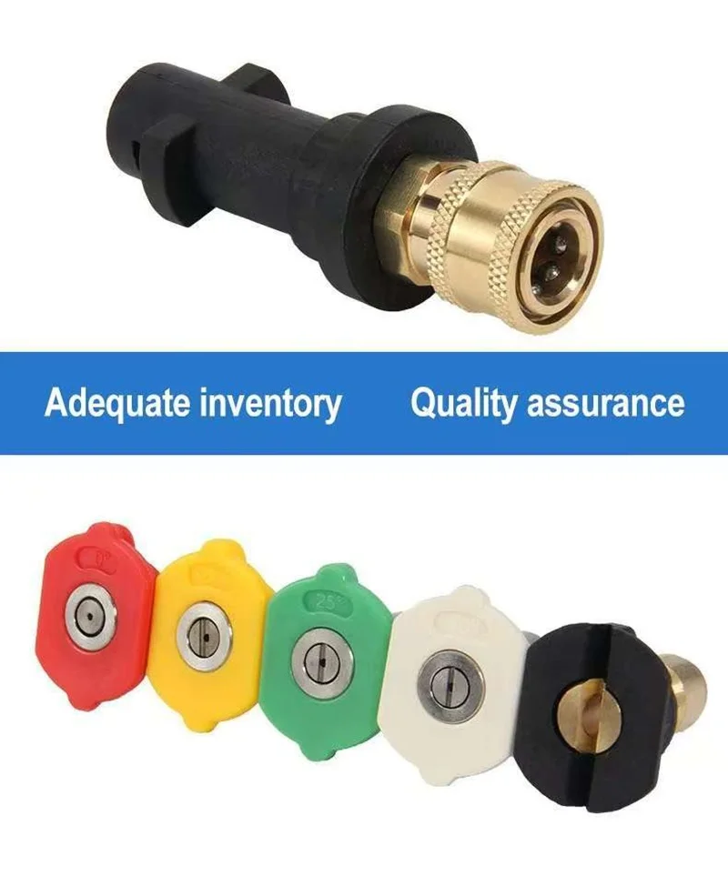 Enhance your car washing experience with these specially designed accessories for Karcher high-pressure water guns (models K2-K7). Includes a quick adapter and a five-color foam pot for efficient and colorful cleaning.